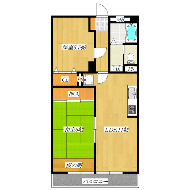 LDK 11.0帖/洋室 6.0帖/洋室 5.5帖 - 向き