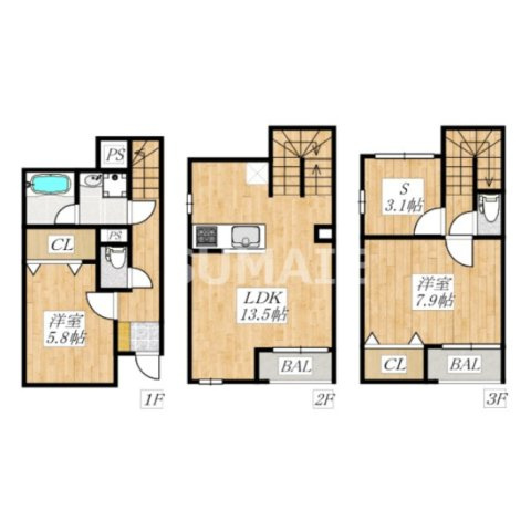 - 楽器相談 / 2人入居可 / 法人可 / 室内洗濯機置場 / メゾネット / バルコニー / 公営水道 / 公共下水 / 電気有 / 駐輪場 / バイク置場あり / ガスコンロ / コンロ2口以上 / システムキッチン / コンロ3口 / カウンターキッチン / バス・トイレ別 / 追焚機能浴室 / 浴室乾燥機 / 温水洗浄便座 / シャワー / 独立洗面台 / エアコン / シューズボックス / インターネット対応 / TVモニタ付インターホン